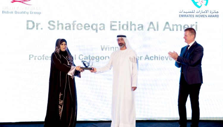 سكر هانم – فازت الدكتورة شفيقة العامري، الأمين العام لمجلس الشباب العربي للتنمية المتكاملة، بجائزة الإمارات للسيدات، وذلك خلال الحفل الذي نظمته مجموعة دبي للجودة تحت رعاية سمو الشيخ أحمد بن سعيد آل مكتوم، الرئيس الأعلى الرئيس التنفيذي لطيران الإمارات والمجموعة.